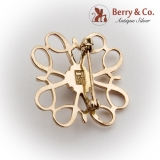 Ornate Open Work Brooch 10 K Gold Sapphire